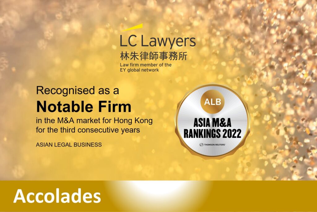 LC Lawyers LLP is recognised as a “Notable Firm” in the Hong Kong market, amongst the strongest domestic and international firms in the M&A market in Asia, for the third consecutive years.