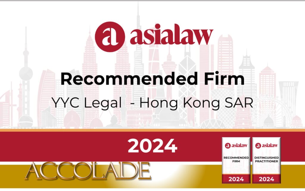 We are delighted to announce that YYC Legal LLP (YYC Legal) and our lawyer have been recommended by asialaw as one of the top-performing legal firms and lawyers in Asia in the following four categories: